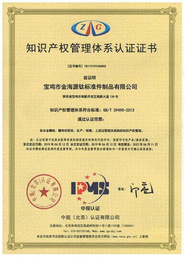 知識產權管理體系認證證書